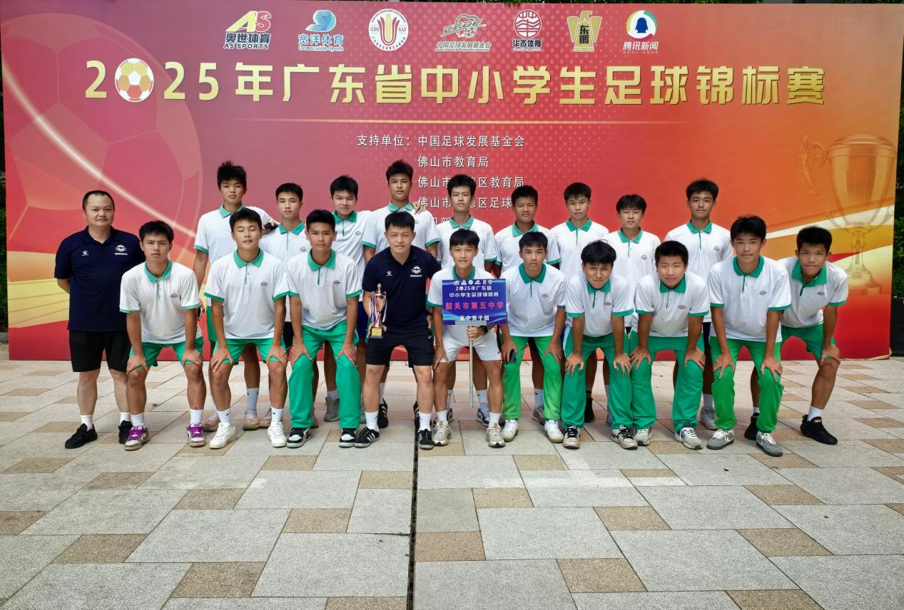 在8月16日结束的2025年广东省中小学生足球锦标赛中,广东北江中学教育集团韶关市第五中学顽强拼搏,力克强敌,取得了高中组第五名的优异成绩,这也是该校近年来参加省级比赛中取得最好成绩的一次。