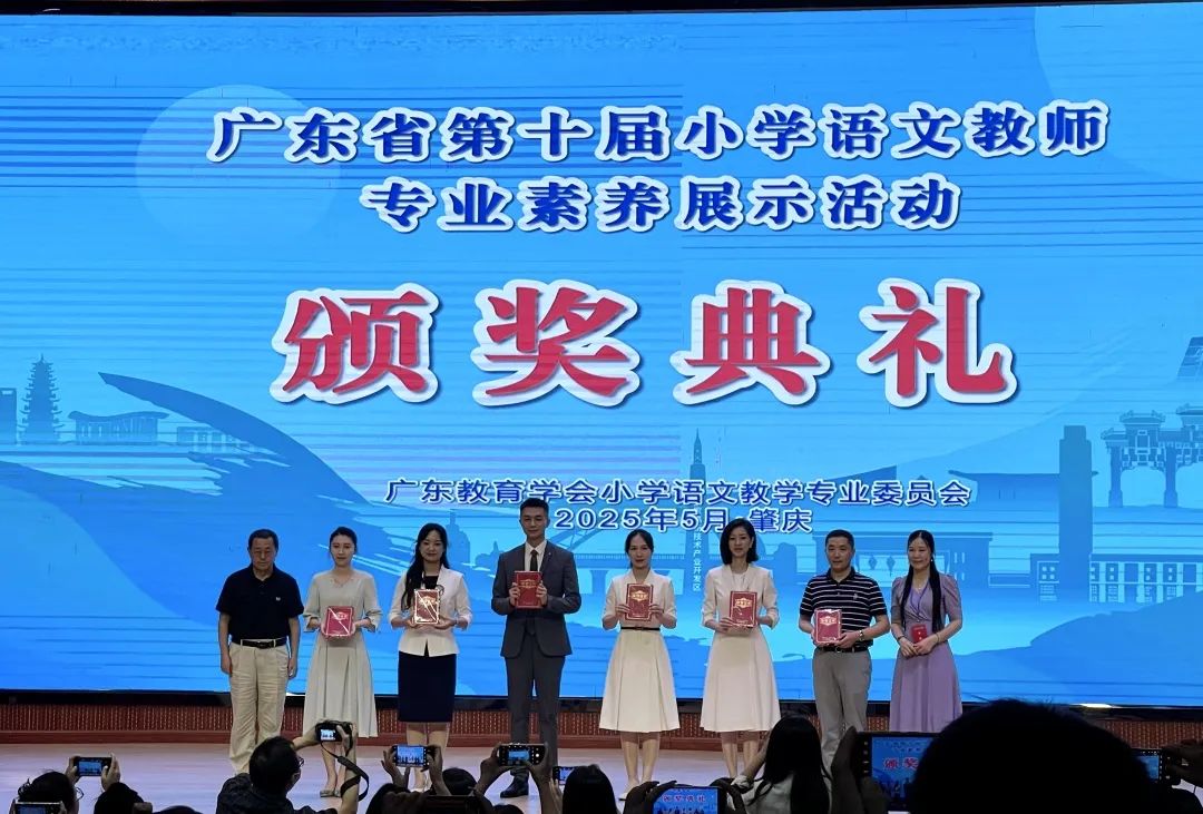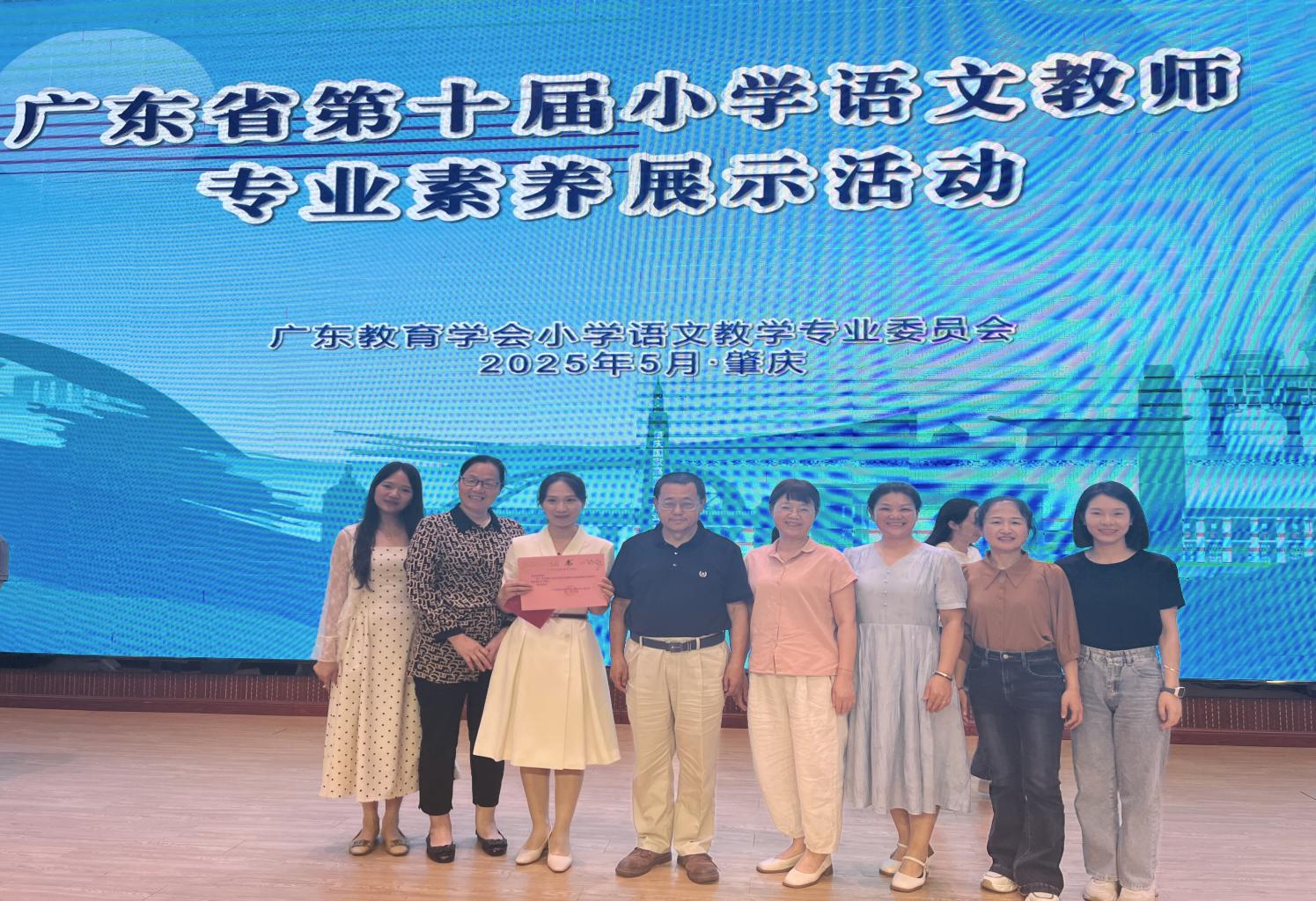 5 月28日下午,历时三天的广东省第十届小学语文教师专业素养展示活动在肇庆市圆满收官。来自全省21 个地级市的21位教坛精英同台竞技,通过现场朗读、粉笔字书写、才艺展示、课例展示、素养答题等环节的激烈角逐,我市选手张美琴老师凭借扎实的专业功底与优异的临场表现,获得专家评委的一致好评,斩获特等奖(综合排名全省第四),创造了我市小学语文教师在省级专业技能竞赛活动中历史最好成绩。
