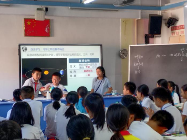 韶关北江实验学校林静老师从学生熟悉的“我们的一天”入手,用富有感染力的图片引发对昼夜交替的好奇。课堂不再是教师的“一言堂”,而是学生主动探索的实验室。学生们分组利用地球仪和手电筒模拟地球运动,亲手记录、合作探究,将抽象的“自转周期”和“昼夜更替”原理内化为直观、深刻的认知,科学探究与实践能力得到有效培养。