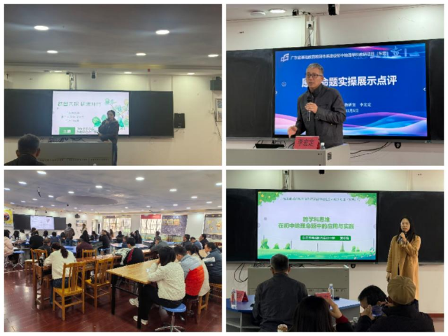 随后,东莞送教团队开展命题专题讲座。李倩雯老师以“玉树芫根”为例,完整呈现从素材整合到题目打磨的命题流程;曹月月老师系统讲解初中地理命题的设问逻辑与学生认知衔接;黄冬梅老师则聚焦跨学科思维的命题融入,引导教师打破学科边界,培养学生综合分析与解决问题的能力。系列讲座为参训教师提供了命题方法与理念的双重引领,助力教师实现从“解题”到“命题”、从“授知”到“育人”的转变。