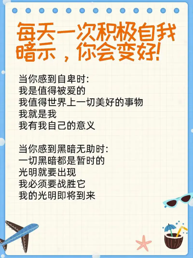 和孩子一起做积极心理暗示 :每天早晨,和孩子一起站在镜子前,微笑看着彼此,大声说 “我今天精神饱满,备考状态佳,高考一定能超常发挥”。这种积极暗示会潜入孩子内心,增强自信心。
