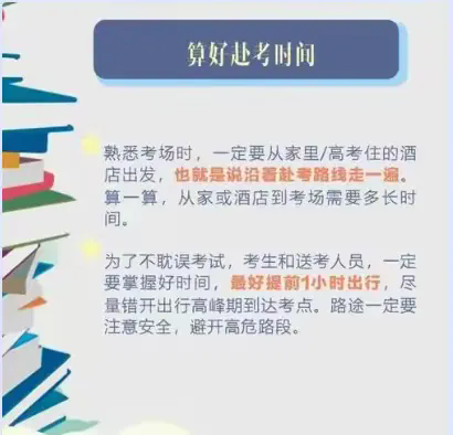 考前物品早准备:提醒孩子放好高考物品,包括准考证、身份证、文具等。把物品放在透明文件袋,放在显眼位置,避免考前手忙脚乱。还可陪孩子提前熟悉考场,了解从家到考点的路线、交通状况,计算好路上所需时间,确保考试当天从容出发。