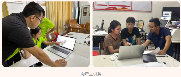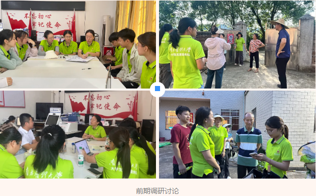 抵达目的地后,突击队全体成员在村主任的带领下考察了该村的基础设施,包括祠堂、文体活动中心等,了解了村子的基本布局,深入村民家中交流,了解户主对庭院改造的需求。之后,按照户主需求,结合当地特色人文,运用绘图设计、空间布局等技术对庭院进行设计,为新的庭院改造提出创新且可行的方案。