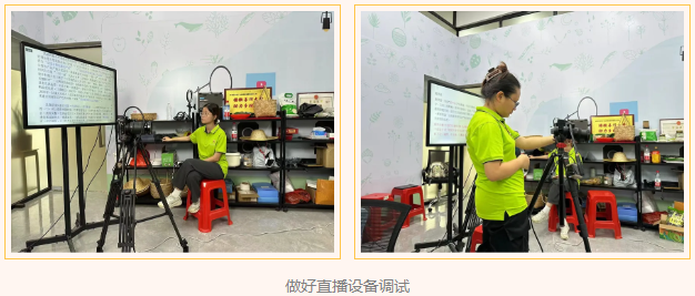 做完直播场地整理、直播设备调试和直播所用样品摆放等工作后,直播正式开始。团队成员赵乐担任主播,结合韶关市仁化县的地理位置、著名景点以及发展前景,对本次助农产品——扶溪鸭稻米、周田平甫柰李、仁化白毛茶、长江米粉、善乐园八角盒等作出详尽的介绍。在历时3小时的直播中,团队借助网络媒体平台大力宣传了仁化特色农产品,主播耐心、热情、认真的讲解吸引了大量用户,最终卖出一万余元的农产品。“双百行动”驻仁化县服务队队长孙俊川以及仁化周田电商小镇的总经理均给予团队极大的肯定,并鼓励团队成员继续努力、让韶关农产品走出去,为广东省“双百行动”贡献青春力量。