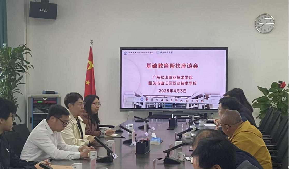 为深入贯彻落实省委、省政府关于推动基础教育深化改革高质量发展的意见和“百千万工程”决策部署,推进实施全口径全方位融入式结对支持粤东粤西粤北地区基础教育工作,进一步推动基础教育均衡发展,促进兄弟学校间的交流与合作,助力“双百行动”落地见效,4月3日,广东松山职业技术学院教务部部长王玉贤带队赴曲江区职业技术学校,开展了以“深化校际协同育人机制 共绘区域职教发展蓝图”为主题的基础教育帮扶座谈会。