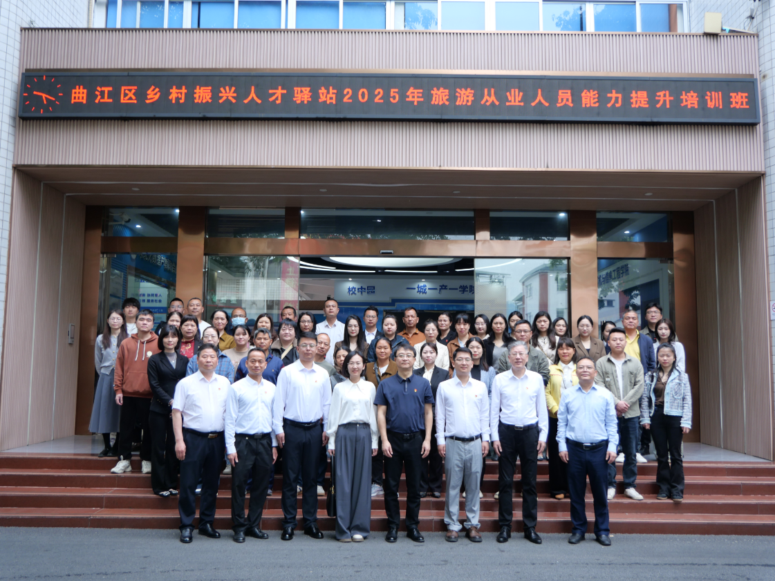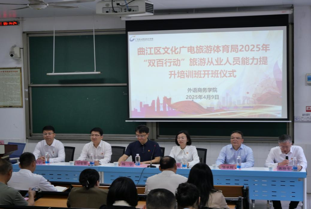 4月9日上午,曲江区2025年旅游从业人员能力提升培训班在广东松山职业技术学院曲江校区顺利举行开班仪式。学校副校长杨宇、曲江区文广旅体局局长吴茜、副局长付宏景、继续教育学院院长邹承辉、学校“双百行动”驻曲江区服务队副队长曾庆宇以及外语商务学院党政负责人出席本次培训开班仪式。开班仪式由外语商务学院院长蒋澄生主持。