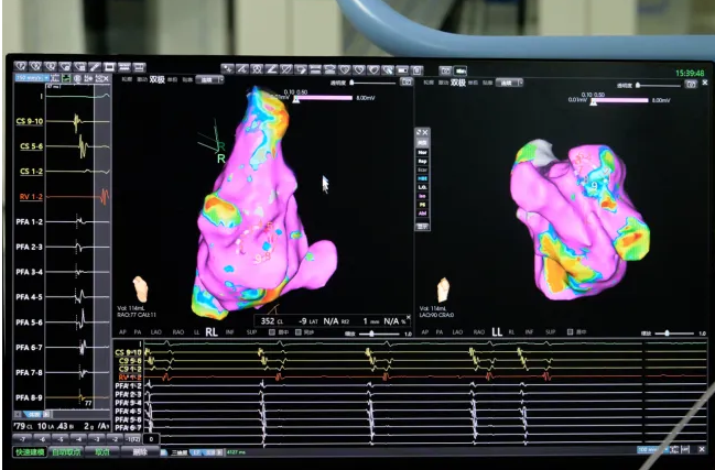 患者赖先生(化名)入院后诊断为心房颤动合并高血压、心脏瓣膜关闭不全等多种病情。杨平珍教授携手曲江区医共体总院人民医院心血管团队进行详细评估,并与患者及其家属充分沟通后,决定采用国际领先的脉冲电场消融技术(PFA),结合三维标测系统(CARTO),为患者实施微创介入治疗。术中,团队精准建立模型,完成环肺静脉前庭线性消融,成功阻断异常电信号传导,术后患者恢复窦性心律,症状显著缓解,并已顺利出院。
