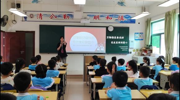 课堂上,追梦学习会学生宣讲团宣讲员们以生动有趣的革命故事和爱国主义教育基地为切入点,用通俗易懂的语言,为孩子们讲述着那段波澜壮阔的历史。