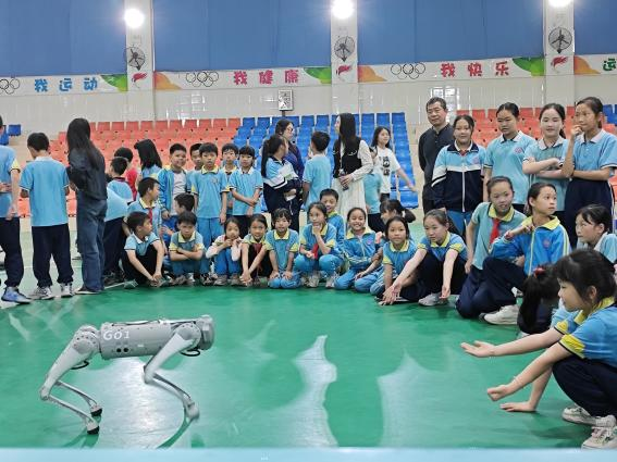 在余靖小学的体育馆内,一场别开生面的科技体验活动正如火如荼地进行着。马克思主义学院的师生们带来了智能机器狗和遥控车,让学生们近距离感受科技的魅力。在老师的指导下,学生们亲手操作机器狗,看着它灵活地做出各种动作,时而奔跑,时而跳跃,发出阵阵惊叹,在体验中感受到科技带来的乐趣,也对科技在现代生活中的应用有了更直观的认识。