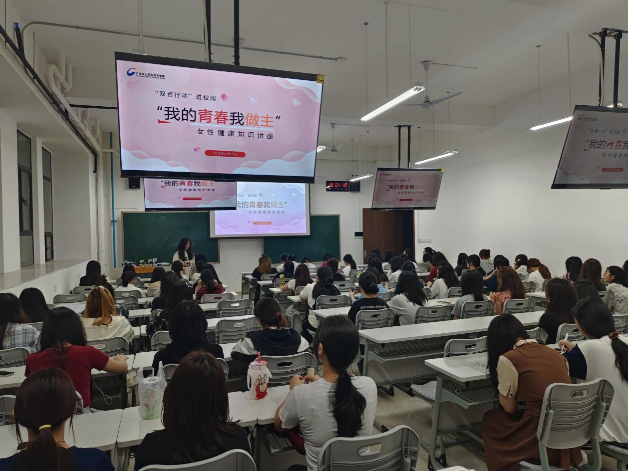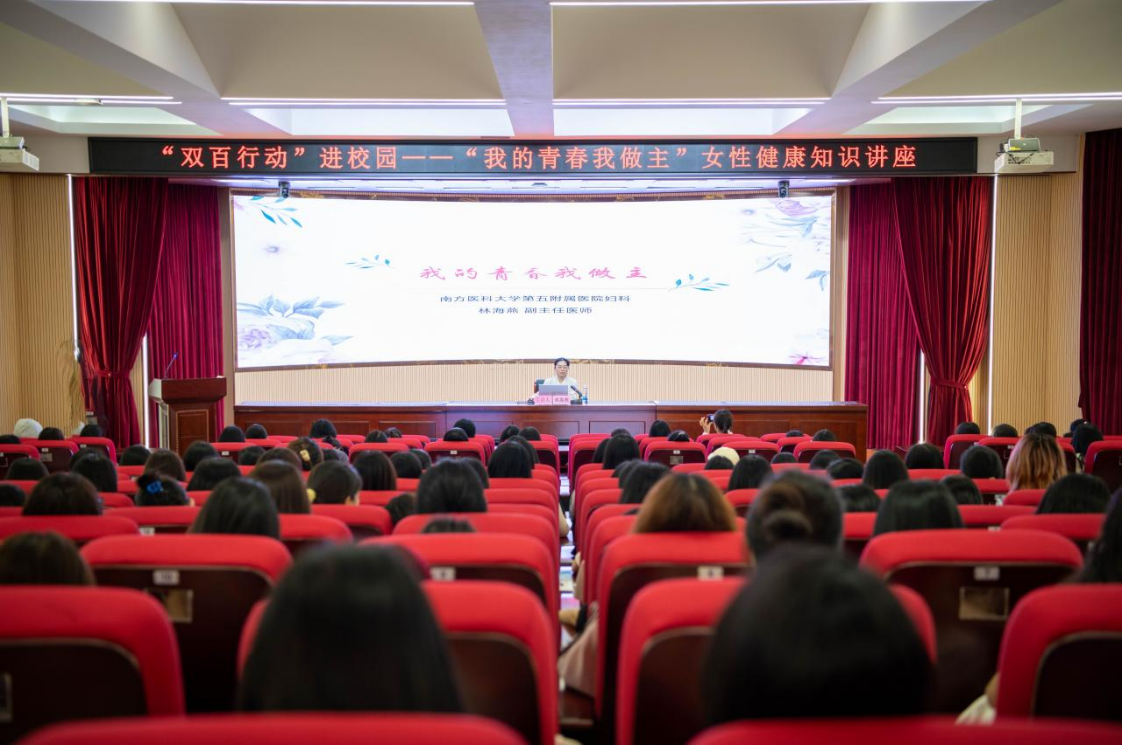 为进一步增强大学生健康意识,普及女性健康知识,提升在校女大学生自我保健能力,4月15日晚上,广东松山职业技术学院特邀请“双百行动”组团结对高校南方医科大学第五附属医院妇科林海燕副主任到校作题为《我的青春我做主》的女性健康知识讲座。此次讲座主会场设在学院曲江校区学术报告厅宽C101,同时在浈江校区、莲花校区设同步直播分会场,共计500余名女大学生到场聆听。