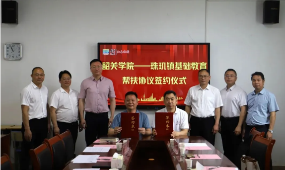 仪式上,韶关学院教育科学学院与珠玑镇签署了珠玑镇基础教育帮扶合作协议,标志着韶关学院与南雄市珠玑镇的基础教育深度帮扶合作迈入新阶段,双方以此为契机,深化合作,共同推动南雄基础教育高质量发展。随后,与会人员围绕“双百行动”及纵向帮扶工作座谈交流,重点聚焦教育布局规划、师范实习生派驻、学生心理健康教育建设等方面展开交流讨论。