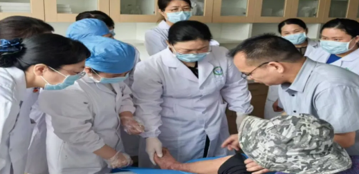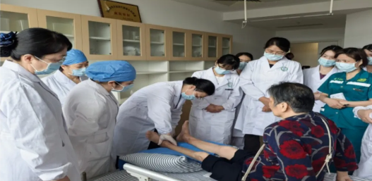 座谈会后,朱燕英护士长一行深入病房,仔细查看患者的情况,耐心询问患者的感受和需求;针对患者伤口不同阶段的情况,手把手指导伤口处理的规范流程,为我院伤口护理工作带来了宝贵的经验。