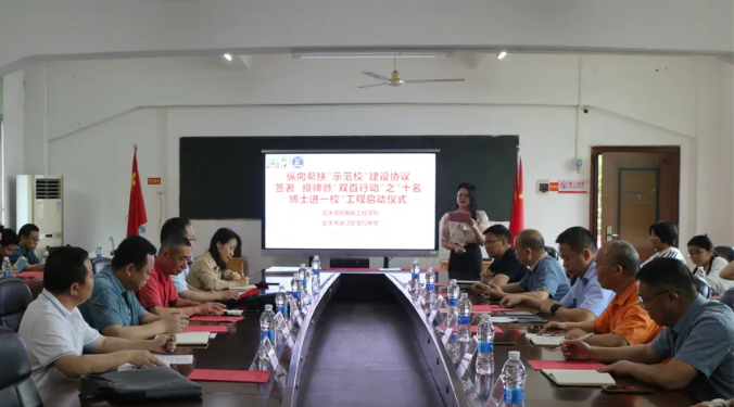 韶关学院智能工程学院相关负责同志详细解读了“示范校”建设协议内容,明确了在师资培养、课程建设、教科研支持、心理健康教育等方面的具体帮扶举措;围绕“十名博士进一校”工程,介绍了博士团队的人员分工与工作规划,将以五个一”项目为抓手,实现精准帮扶。