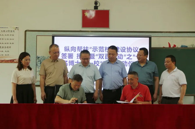 为深入贯彻落实省委、省政府关于“百千万工程”教育行动基础教育帮扶工作和“双百行动”的相关部署,深化校地合作,扎实推进纵向帮扶和“双百行动”结对共建走深走实,近日,韶关学院智能工程学院分别与龙归镇中心小学、龙归中学举行纵向帮扶“示范校”签约暨“双百行动”之“十名博士进一校”工程启动仪式。韶关学院智能工程学院、省级中小学教师发展中心有关负责同志,区教育局、龙归镇中心小学、龙归中学主要负责同志参加仪式。