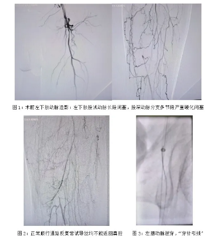 患者有40年吸烟史,因"左小腿反复溃疡半年余"入院。检查发现其左下肢股浅动脉长段闭塞,股深动脉分支多节段严重硬化闭塞,导致左下肢组织长期缺血、伤口无法愈合,面临截肢风险。