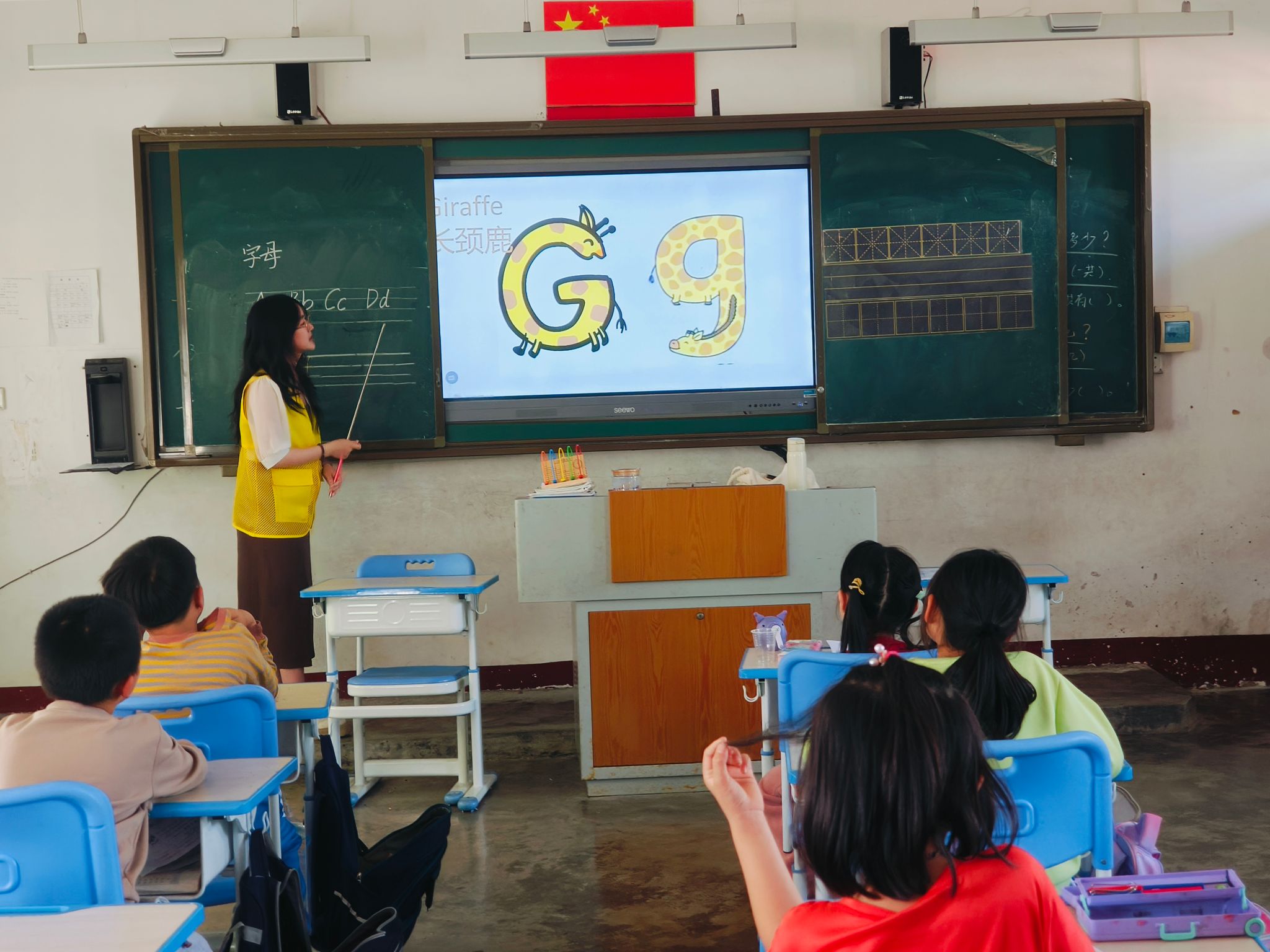 “青春赋能,送教下乡”活动是外国语学院赋能“双百行动”的创新实践。经过五周的英语送教活动,教学效果显著。目前已基本落实80%的学生学会了元音音标及26个英文字母的拼读,通过游戏等趣味性创新型课程理念,提高了学生们的学习热情和学习氛围。