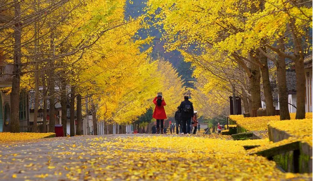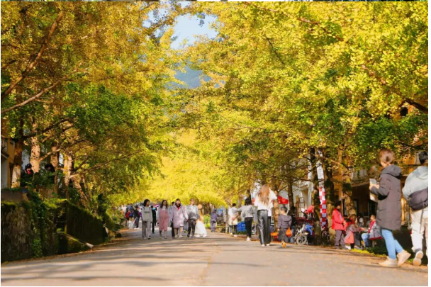 南雄是国内纬度最低的天然银杏生长区域。广东省唯一的银杏主产区,全国最美的银杏观赏地之一。最具代表性的就是帽子峰旅游景区的黄金大道和坪田千年古银杏群。帽子峰旅游景区的核心景观带黄金大道,街道笔直宽敞、清静幽雅,道两旁一栋栋两三层的连排小楼是林场的职工宿舍,建筑风格有着上个世纪的怀旧风情。沿道两排高大的银杏树,在建林场之初就已栽种下,默默见证着帽子峰林场的成长和变迁。深秋时节,金黄的树叶挂满枝头,铺满屋顶和地面,为这条幽静的黄金大道涂抹上诗一般的色调,犹如走进一个金秋的童话世界。 南雄不仅有好玩的,还有更多好吃的。南雄“味兼南北,五味调和”饮食上融合了广府和客家地区的特点,以鲜香热辣著称。吃辣,已经刻在南雄人的DNA里面,梅岭辣鹅、酸笋鸭、牛干脯等各色菜肴,都是变态辣的级别,让人开胃又大呼过瘾,所以南雄也被称为是“广东吃辣天花板”