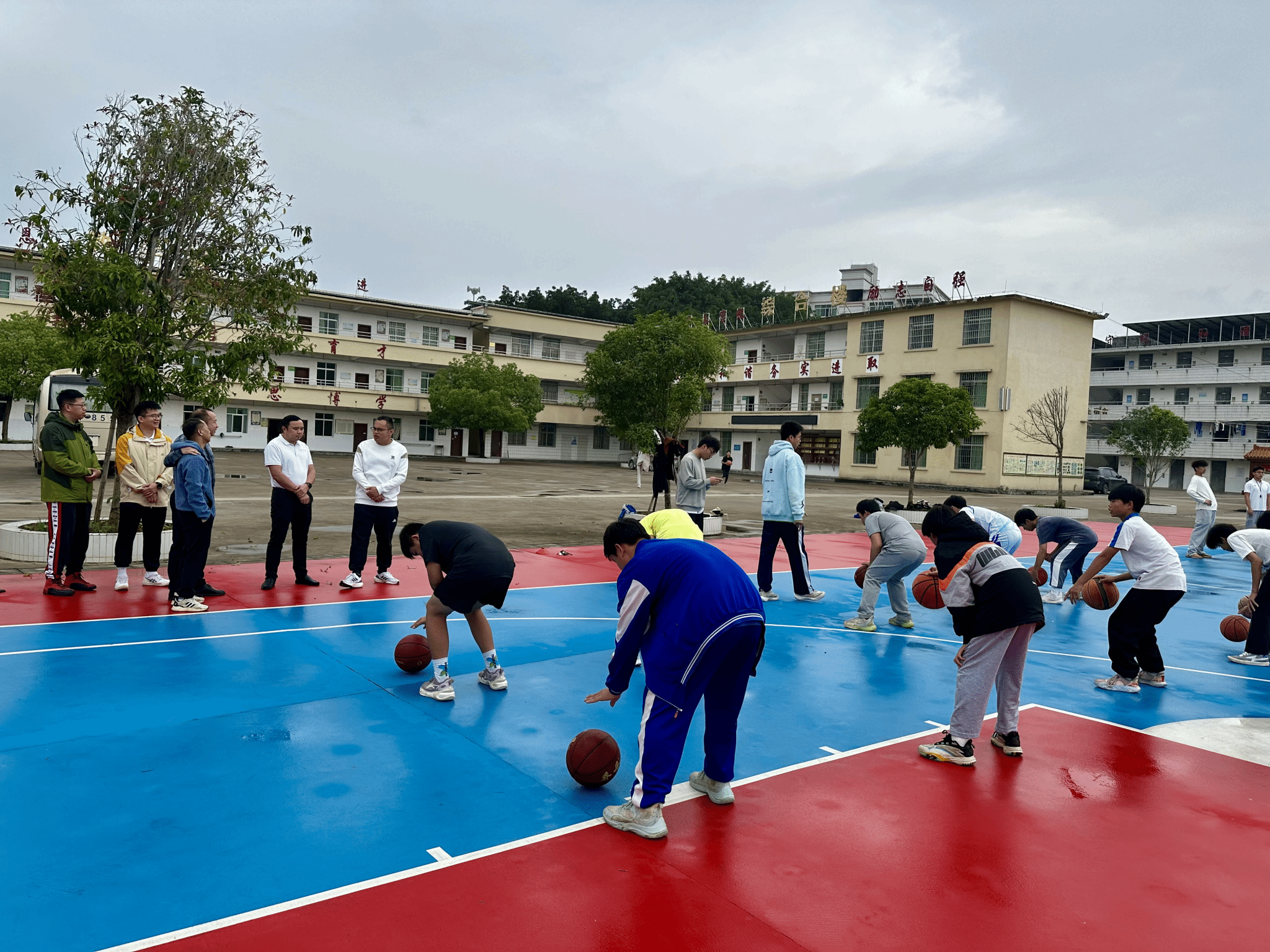 在训练营中,教练团的学生们耐心细致地为同学们讲解乒乓球的握拍姿势、发球技巧和接球要领。他们手把手纠正同学们的动作,不厌其烦地重复示范。同学们紧紧盯着乒乓球,认真模仿学习,尽管不少人是初次接触,但在专业学生的指导下,逐渐找到了节奏。小小的乒乓球台边,充满了专注与探索的氛围。篮球场上更是活力四射。在进行投篮练习时,学生们围绕在教练身边,学习站位、发力方式。同学们热情高涨,积极参与运球、投篮等活动,在球场上尽情挥洒汗水,相互鼓励,团队合作的精神在一次次传球与投篮中得以彰显。