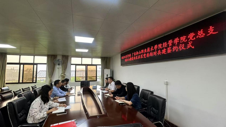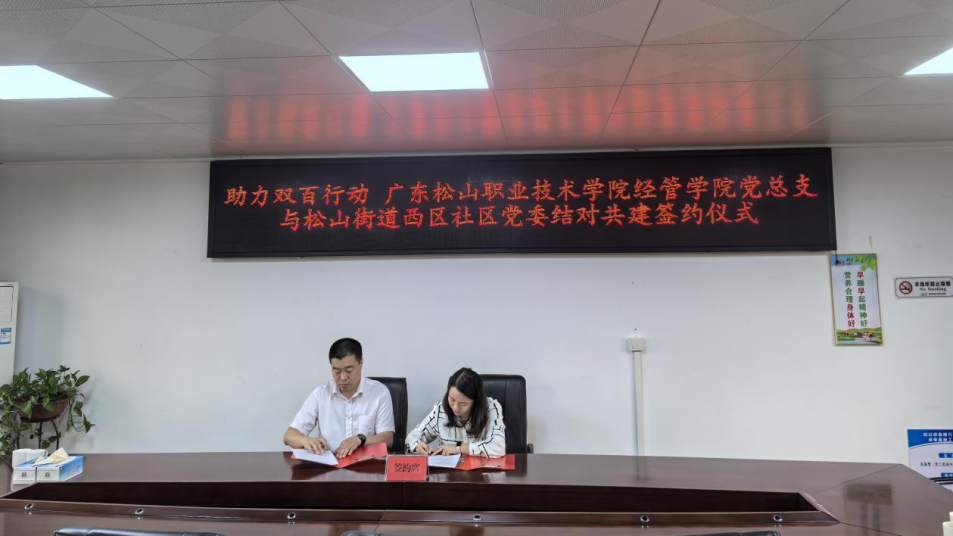 为深化校地合作,推动党建引领基层治理与高质量发展, 4月25日上午,广东松山职业技术学院经济管理学院党总支与曲江区松山街道西区党委举行结对共建签约仪式,共同推进“双百行动”走深走实。该校“双百行动”驻曲江区服务队副队长、校团委副书记曾庆宇,经济管理学院党总支副书记苑毅,曲江区松山街道办事处主任吴基想以及双方代表出席活动。