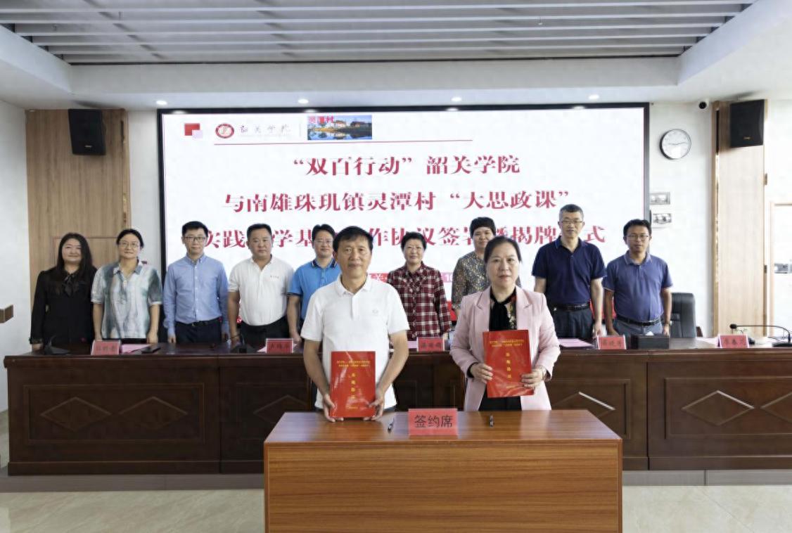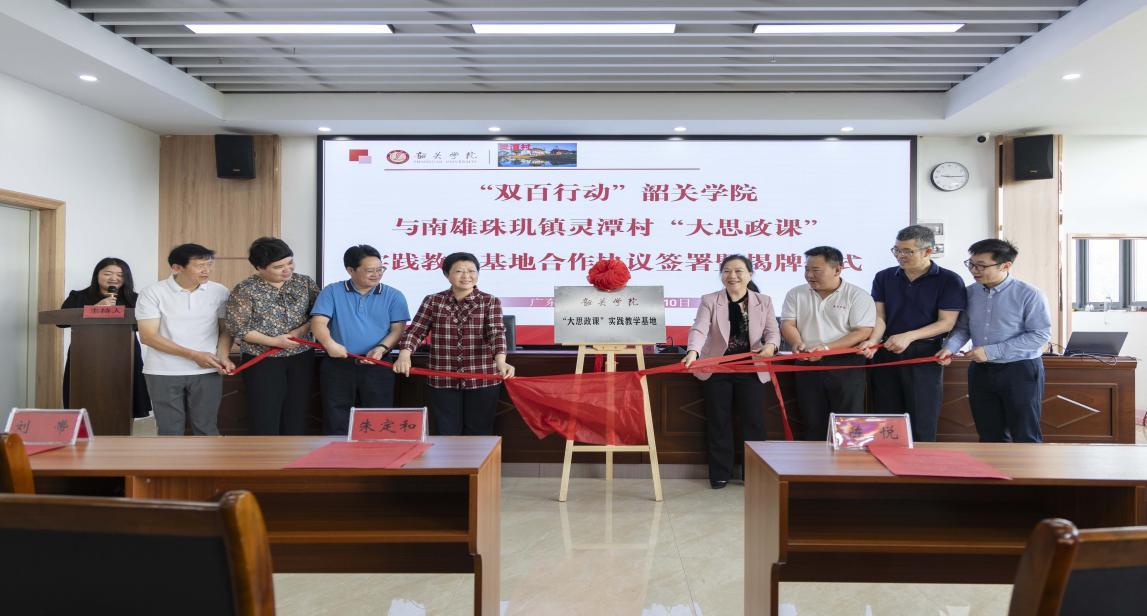 韶关市、南雄市教育部门及珠玑镇政府相关负责人,灵潭村代表,韶关学院“双百行动”驻南雄服务队、韶关学院教务部、马克思主义学院等单位师生代表共同参与此次活动。活动现场,韶关学院与灵潭村签署“大思政课”实践教学基地合作协议并揭牌,马克思主义学院负责人介绍了本次实践教学活动的背景与意义。