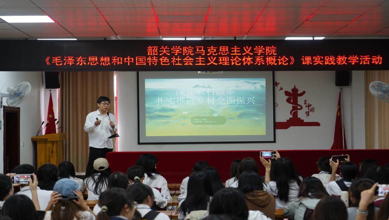 在全面推进乡村振兴的时代浪潮中,一堂别开生面的思政课于田间地头展开。5月10日、11日,韶关学院组织师生走进广东省“百县千镇万村高质量发展工程”首批典型村——南雄市珠玑镇灵潭村,开展红色文化赋能“双百行动”实践教学,推动思政“小课堂”与社会“大课堂”深度融合,引导师生感悟乡村振兴实践伟力。