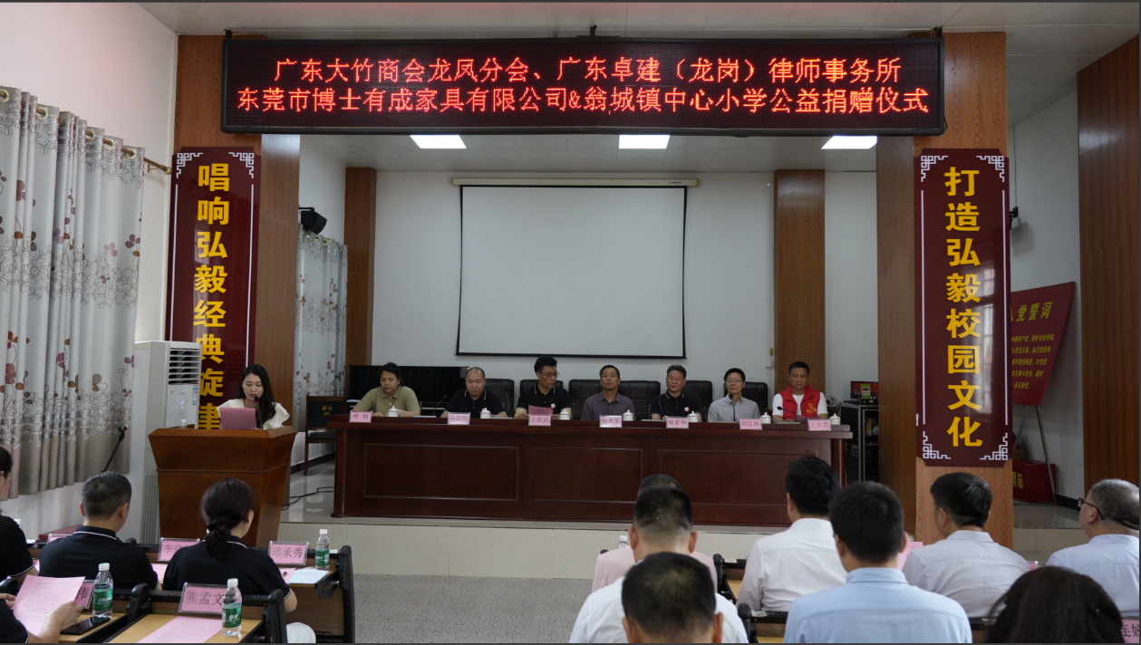 广东大竹商会龙凤分会、广东卓建(龙岗)律师事务所、东莞市博士有成家具有限公司代表一一发言。他们表达了对教育的关注,对孩子们努力成才的殷切期盼,并表示企业有责任有义务回馈社会、助力教育。