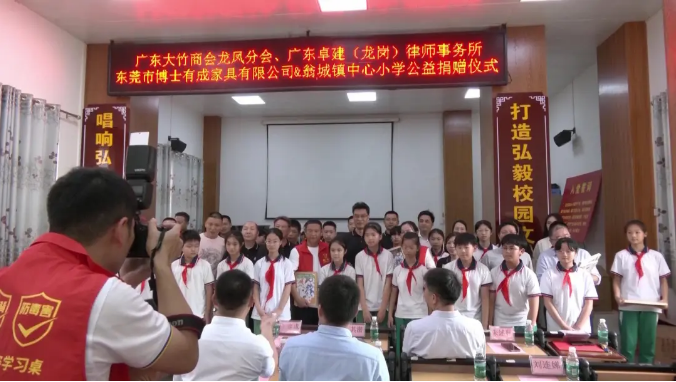 据了解,此次慷慨捐赠的三家爱心企业分别是广东大竹商会龙凤分会、广东卓建(龙岗)律师事务所、东莞市博士有成家具有限公司,共捐资65000余元,并为学生捐赠了一批价值82000元的文体用具和学习桌椅。
