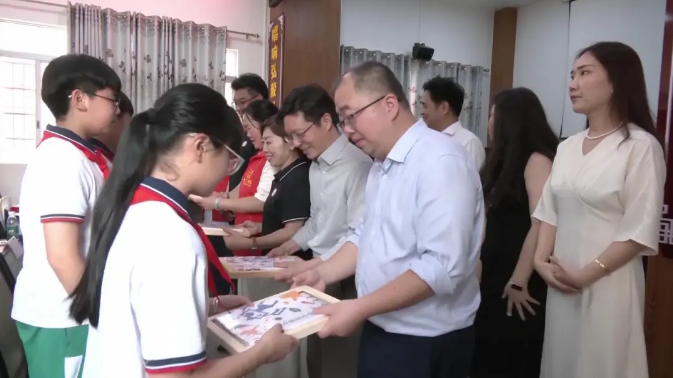捐赠仪式上,学校为爱心企业代表回赠了纪念牌匾及荣誉证书,学生代表也为爱心企业代表送上了《翁城孩子的诗》及自己的绘画作品,场面融洽热烈。