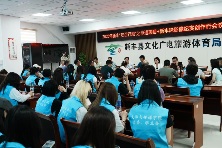 2025年5月10日,新丰县文广旅体局与东莞理工学院文学与传媒学院联合举行“双百行动之非遗项目+新丰味影像纪实创作行”启动会议,标志着校地深度合作的文化振兴项目正式拉开帷幕。新丰县文广旅体局、农业农村局、融媒体中心代表,非遗传承人、镇村负责人及东莞理工学院师生团队共聚一堂,共商非遗保护与乡村振兴协同发展大计。