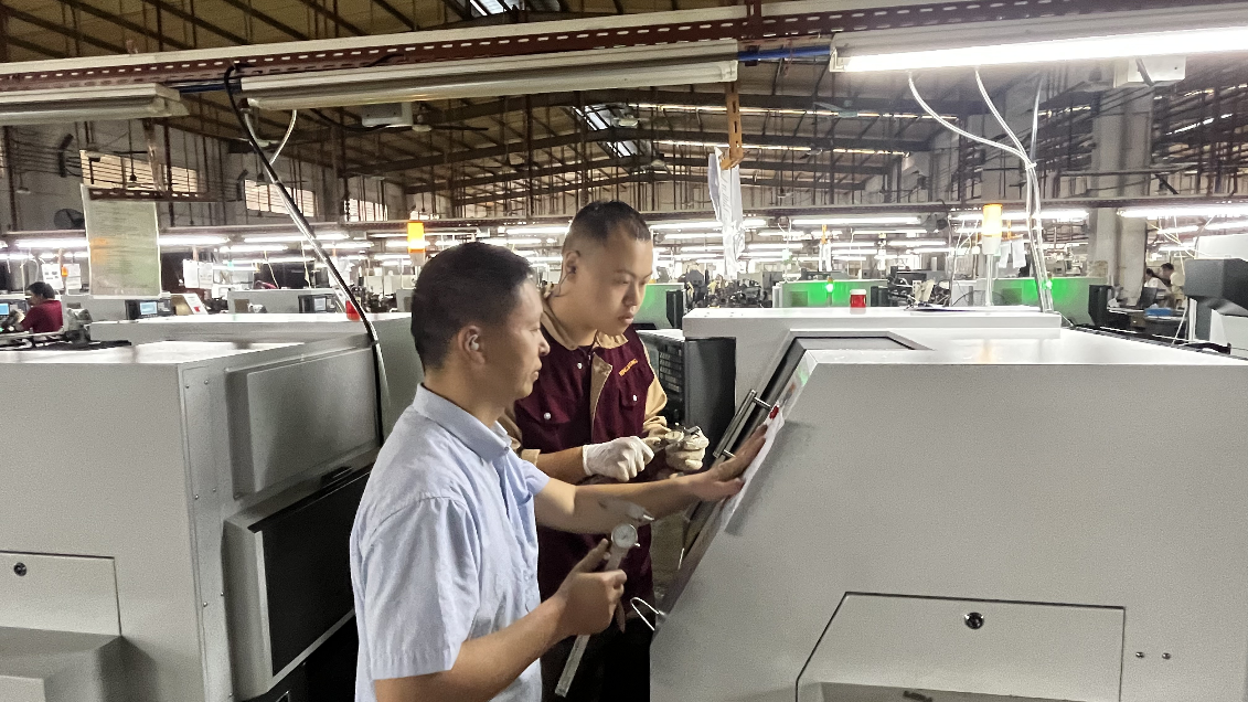 走进新丰县永强五金制品公司的品质车间测量室,记者看到企业带教师傅正在手把手指导学生进行产品检测。“我们两校现与13家企业签订合作协议,中高企贯通培养,共同开发课程体系、企业导师参与教学、共建实训基地等,实现‘教、学、研、创’一体化实训,学生学习与岗位实现了无缝对接。”新丰县中等职业技术学校校长潘志明介绍道。