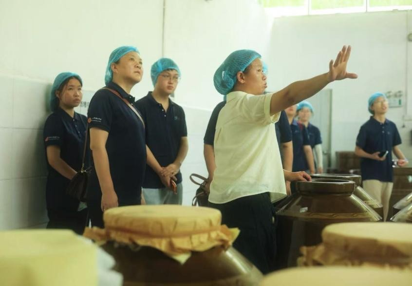“酒香不怕巷子深”,绕过蜿蜒的山路,突击队走入澄江的一处深巷—始兴半天下酿酒有限公司。自2025年寒假三下乡后,突击队员们第二次走入熟悉的地方。厂长饶舒讲述道:“同学们在寒假的实践中不仅为企业设计了包装和销售优化方案,更是借助播放量超10万的爆款视频使得更多人了解澄江黄酒。”此时正值黄酒酿造时期,队员们走进了黄酒生产车间,在蒸汽氤氲间学习黄酒的制作过程。