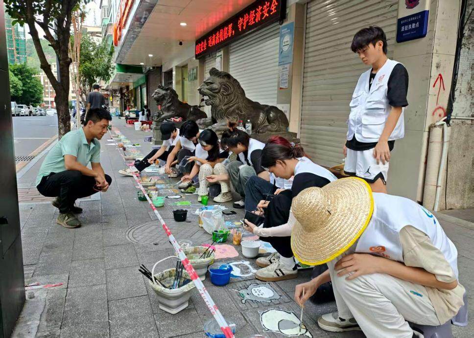 盛夏时节,韶关乐昌市坪石镇主街区的人行道上,一抹抹明快的色彩成为街头新景。广东艺术职业学院彩绘队伍之青“绘”香韵师生团队完成的盲道彩绘,不仅让原本灰暗的青石板焕发新生,更以艺术之力唤醒公众对无障碍环境的关注——这正是广东省 “百千万工程”大学生突击队艺美乐昌活动的生动实践,彰显了高校以专业所长服务基层、助力乡村振兴的担当。