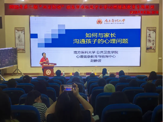 这四场讲座按“识别—理解—干预—协同”的逻辑展开。南方医科大学陈建斌老师、李雪果老师、任鹤平老师、赵静波教授分别就如何开展中小学心理健康教育工作作了相关培训。