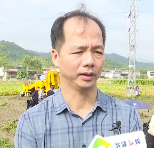 因为翁源这个地方,老百姓种植的话还是传统的人工种植的方法,存在最大的一个问题就是效率很低。那普通老百姓一天可能就收两分地左右,但是我们的机械化一天最少可以收20亩地,整个效率是直接提高100倍的。刚才看到的这个机器,它最大的好处就是拔花生跟摘花生,它是一体,就联合收获机。它一次性过就能够把花生拔起来,摘干净,那实现(了)效率的一个提高。